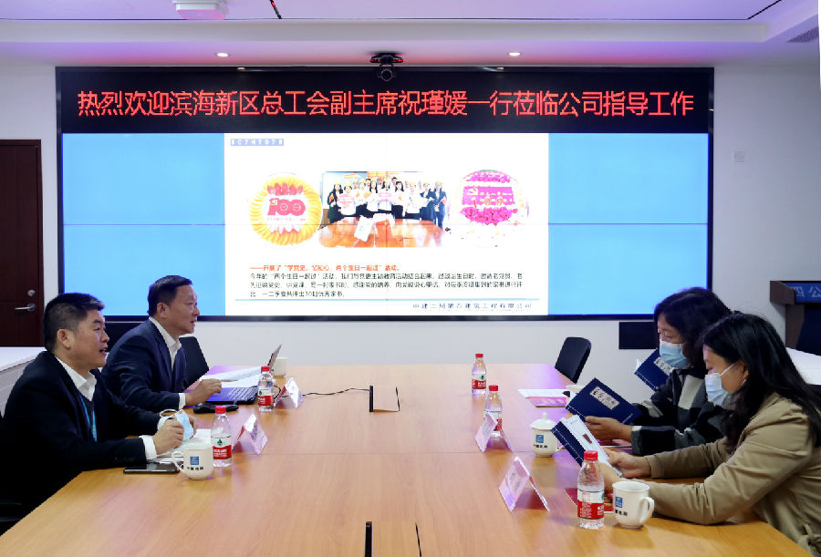 11月5日,天津市濱海新區總工會副主席祝瑾媛、宣傳網絡部副部長劉媛一行到公司調研指導工作。公司黨委副書記、紀委書記、工會主席吳業欽陪同調研。