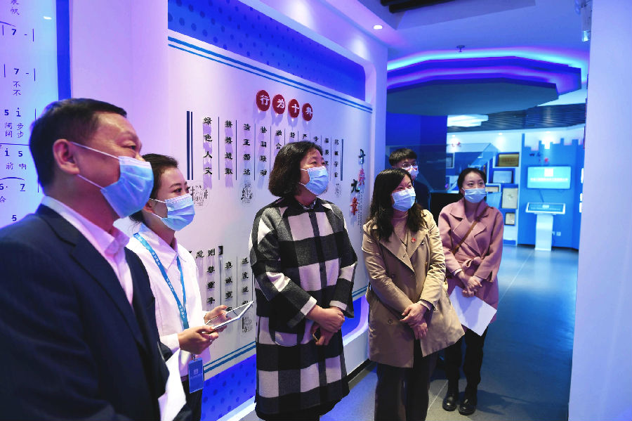 祝瑾媛一行首先參觀了公司文化展廳,詳細了解了公司的發展歷程,仔細觀看了公司取得的多項國家級榮譽,認真觀看了公司宣傳片。她用“激情澎湃、氣勢磅礴”對公司工程建設及企業文化建設取得的成就給予了高度贊揚。
