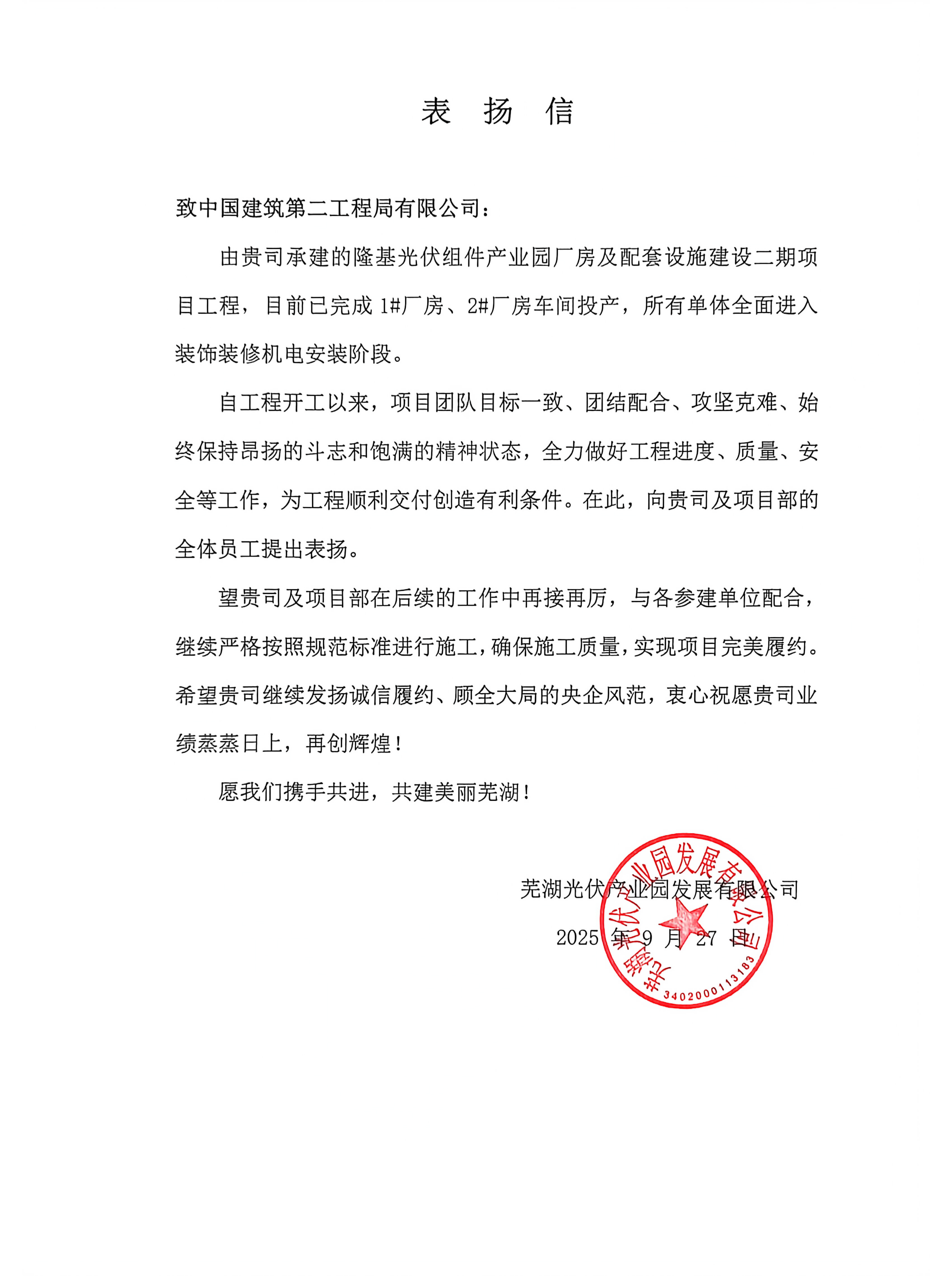 一起看看部分項目的表揚信吧